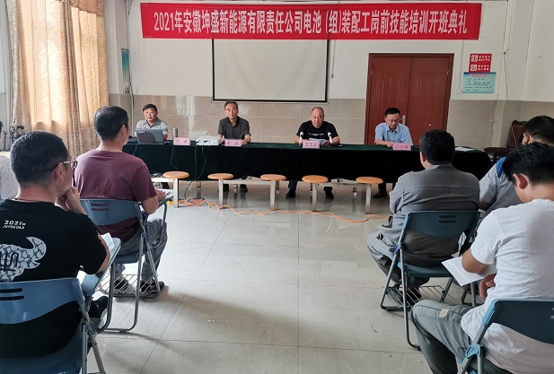 安徽坤盛新能源有限責(zé)任公司鉛酸蓄電池制造工(初級)崗前技能培訓(xùn)班開班典禮,于2021年9月3日下午15時在安徽坤盛公司培訓(xùn)室隆重舉行。